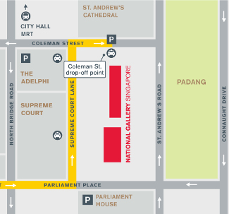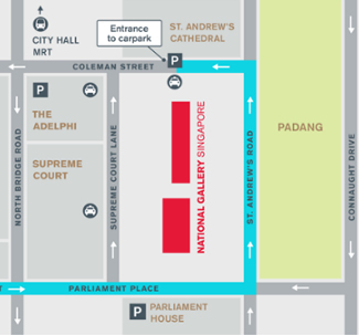 Entrance to the Gallery's carpark is on the far right of Coleman Street. Access by turning left before St. Andrew’s Cathedral from the left lane of St Andrew’s Road.